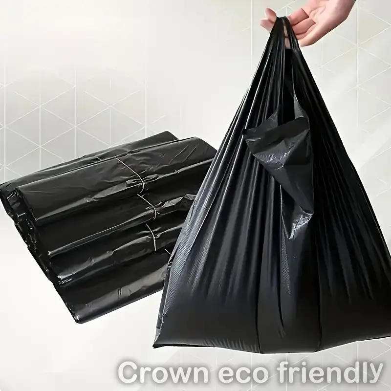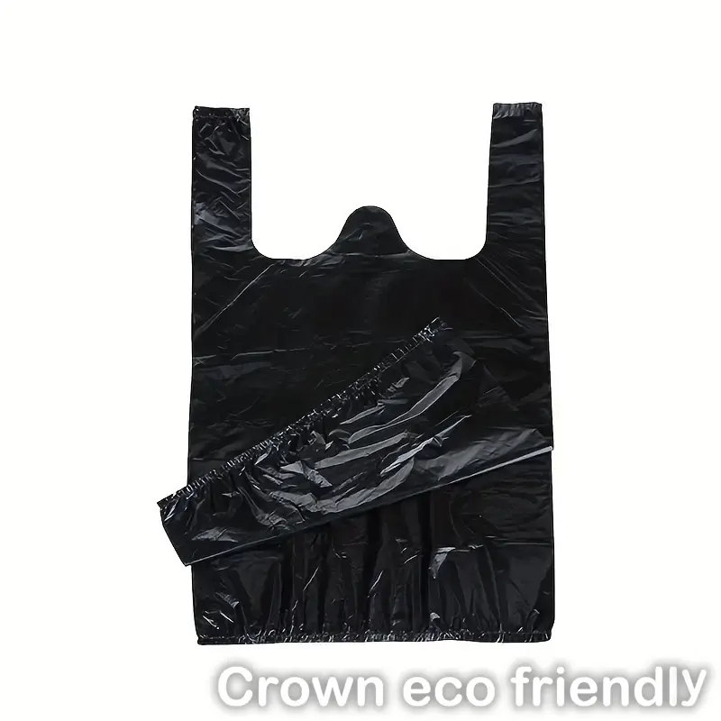 Upgrade your packaging with black HD plastic t-shirt bags. Perfect for grocery stores, restaurants, bakeries, and retail shops, these 1/6 size plastic shopping bags are made from durable HDPE, resisting rips and tears for reliable use.